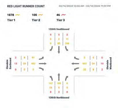 ISI provides detailed analysis and insights into red-light running violations, enabling strategic initiatives for mitigating risks